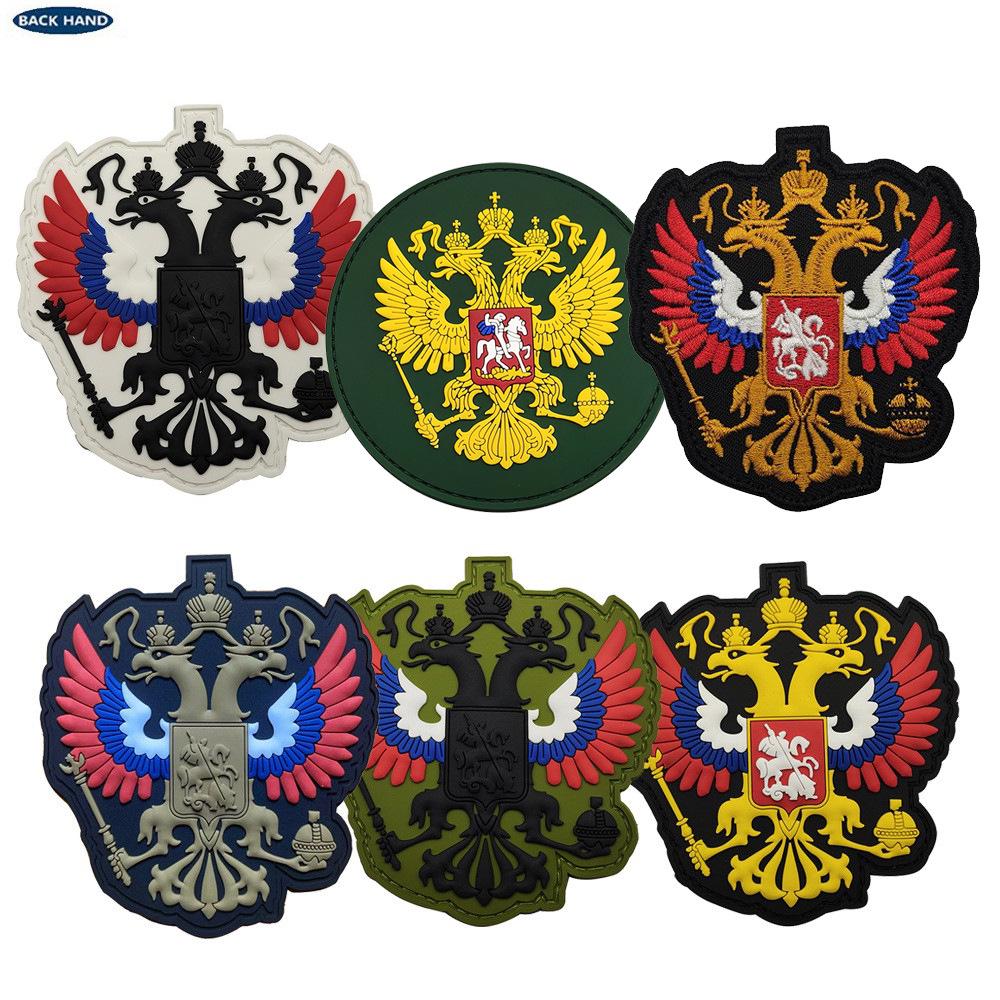 Tsarist Russia Military Patch: Double-Headed Eagle & Tricolor Flag - Hook & Loop Badge