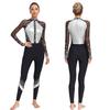 Sparkling Rhinestone Dance Leotard for Women, Full Body Long Sleeve Jumpsuit with Sheer Mesh Patchwork & Color Block Design