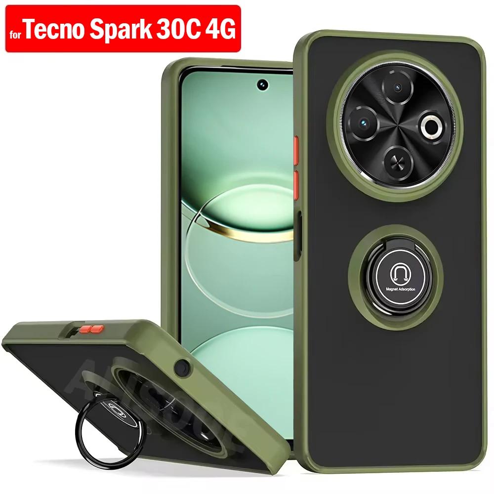 Shockproof Armor Funda for Tecno Spark 30C (4G) Case Translucent Ring Stand Holder Cover for Tecno Spark 30C (KL5, Kl5n) Cover