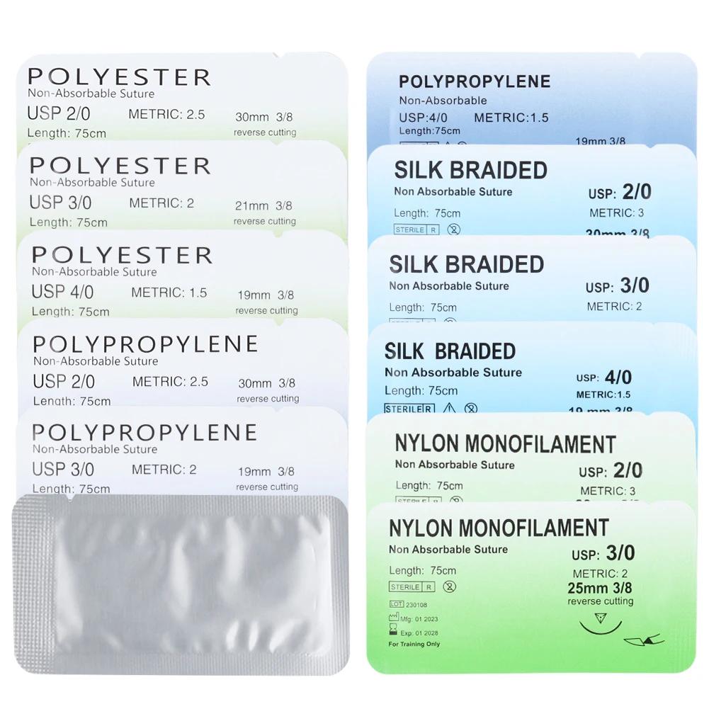 2/0 3/0 4/0 Medical Dental Sutures Nylon Silk Polypropylene Polyester Surgical Simulation Suture for Suture Teaching Exercises