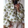Fall New Style Fashionable Faux Lamb Fur Printed Loose Zipper Pullover Long-sleeved Top