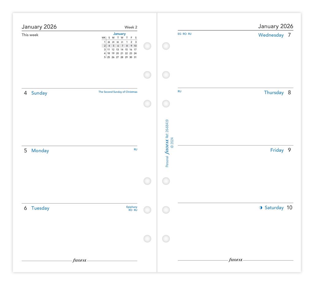 Filofax System Organizer January Bible Officially Imported Refill, 2026, Start, Weekly, White, 26-68419,