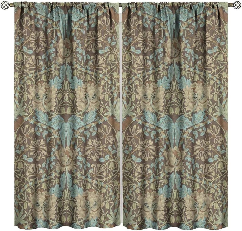 Retro Bohemian William Morris Plant Floral Blackout Curtains Abstract Vintage Country Floral Leaf Pattern Window Drapes for Li