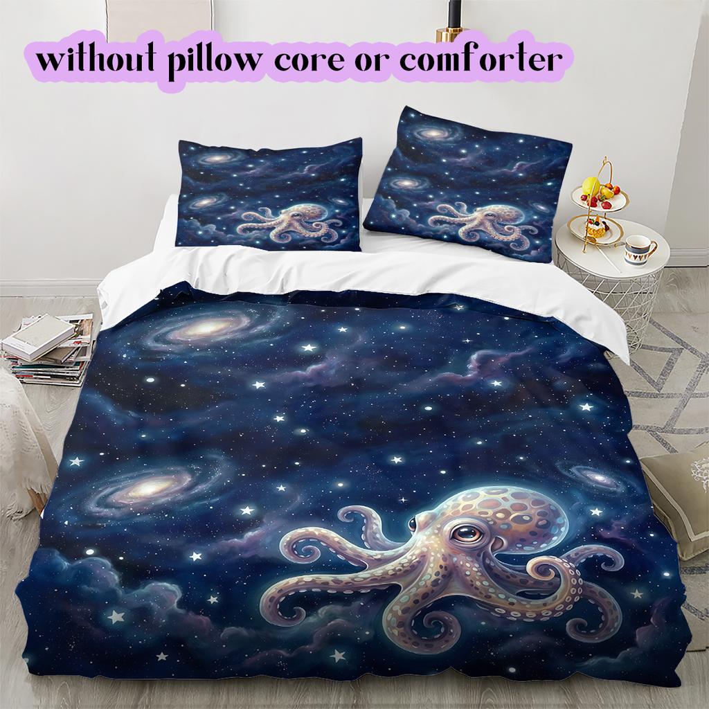 Starry Sky Animals Pattern Bedding Quilt Set Quilt Cover Pillowcase Home Decoration Birthday Gift (1 * Duvet Cover + 2 * Pillowcase, Without Core)