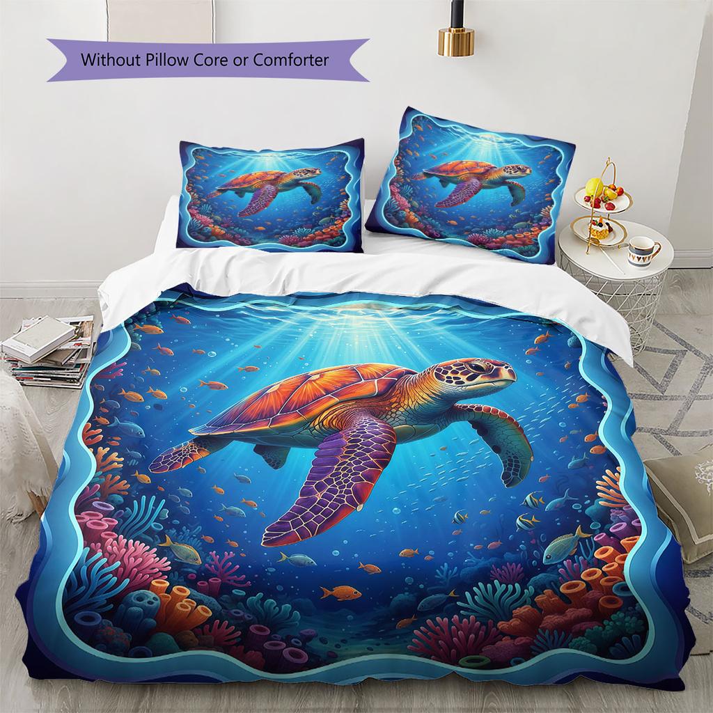 UnderwaterWorld Pattern Bedding Quilt Set Quilt Cover Pillowcase Home Decoration Birthday Gift (1 * Duvet Cover + 2 * Pillowcase, Without Core)