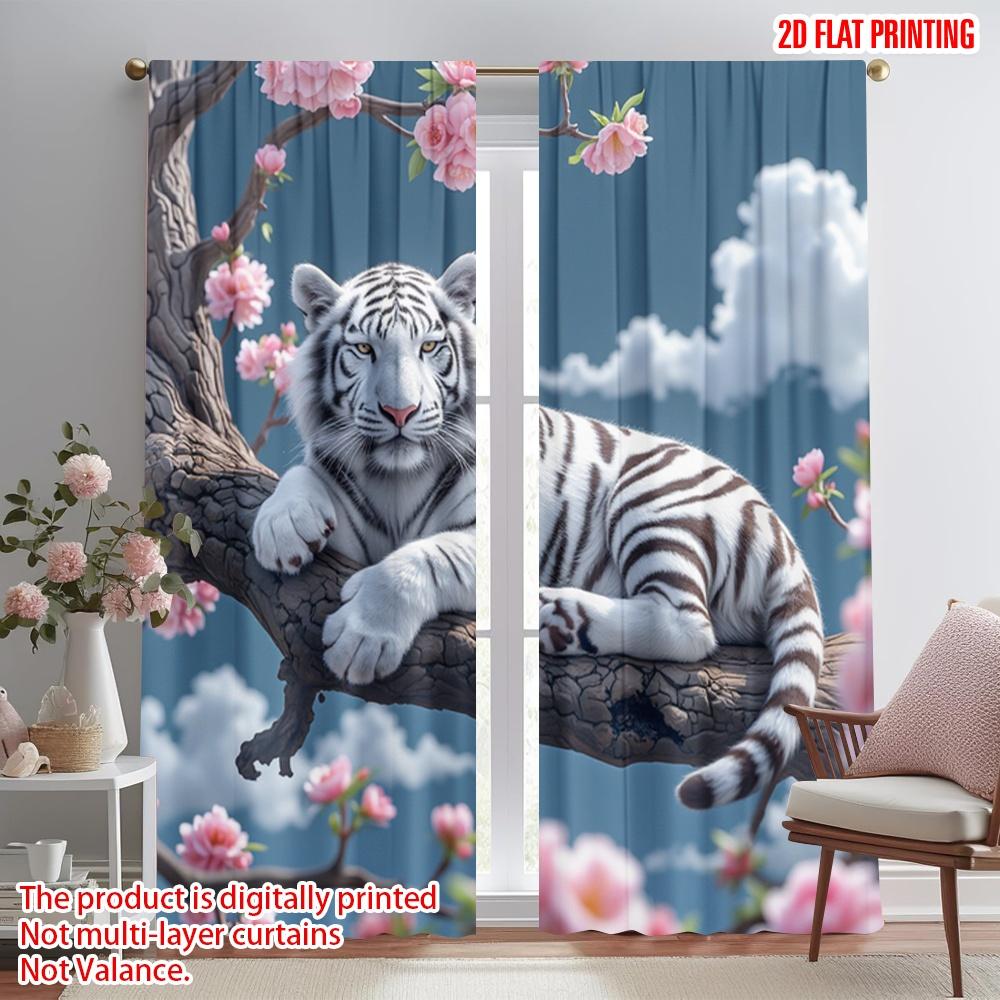2pcs 2D Flat Printing Curtains Elegant White Tiger Polyester Without Electricity Party Decorations Use for All Occasions