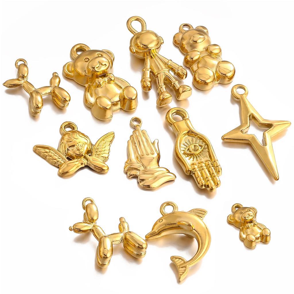 3Pcs Stainless Steel Universe Ocean Animal Pendants Charms DIY Jewelry Making Astronaut Star Bears Balloon Dog Craft Finding
