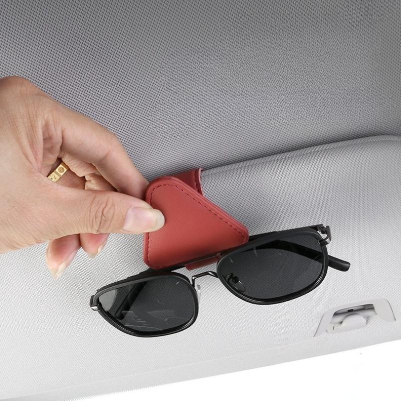 1Pc Car Sunglasses Holder Sun Visor Sunglasses Clip PU Glasses Case Mount Ticket Card Clip Car Interior Accessories