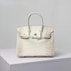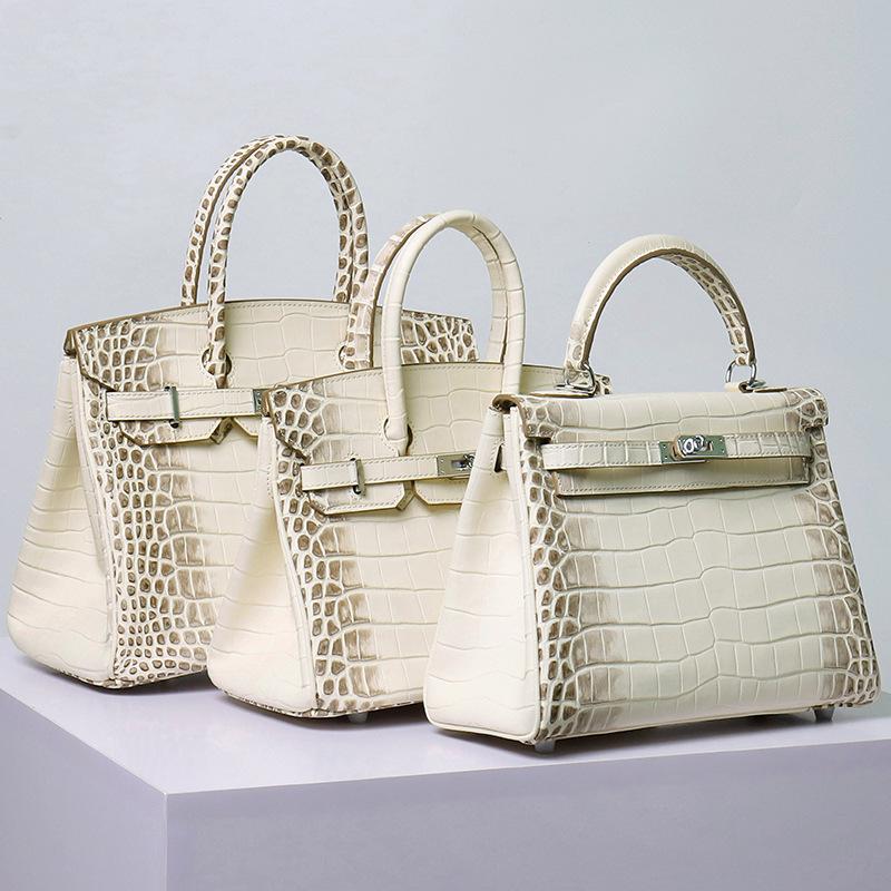 New First-layer Cowhide, Crocodile Pattern Portable Shoulder Messenger Bag, Genuine Leather, Himalayan Rhinestone Bag, Silver.