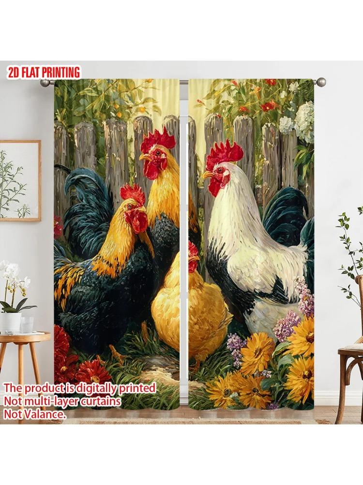 2pcs Plane Printing Curtains Chicken Theme Polyester (without Rod) Decorations Inside Ldeal for Bedroom & Living Room