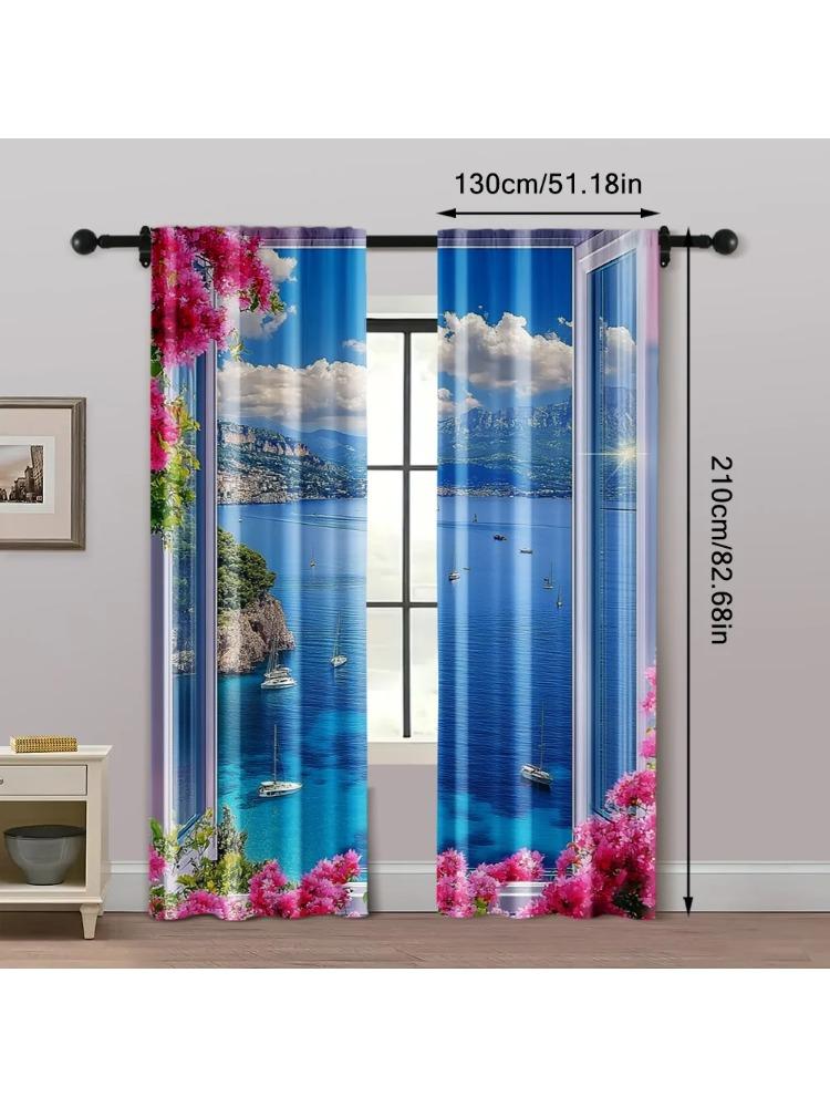 2pcs Print Curtains Sea View Machine Washable Fabric (without Rod) Versatile All Perfect for Room Kitchen Study Bedroom