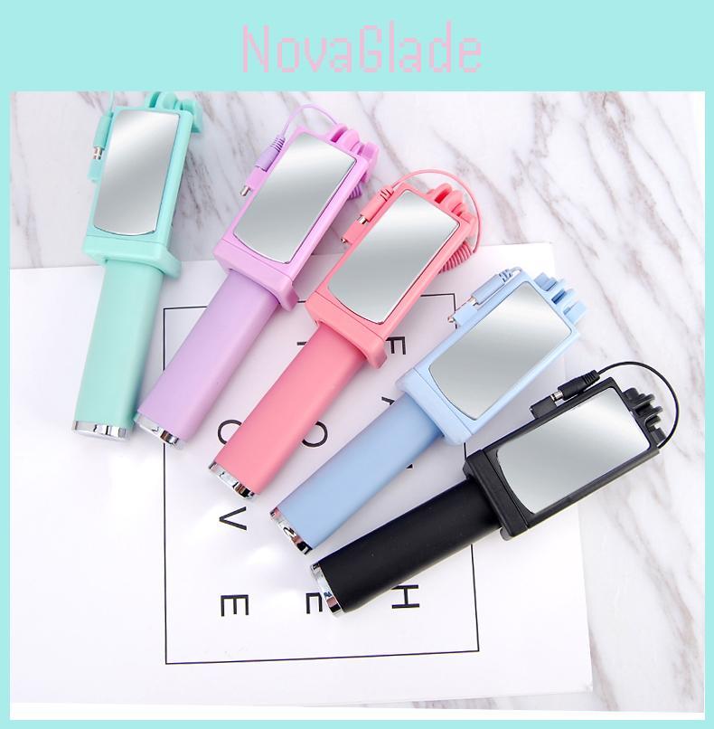 Pink Selfie Stick With Rotating Mirror And Rechargeable Light For Content Creators