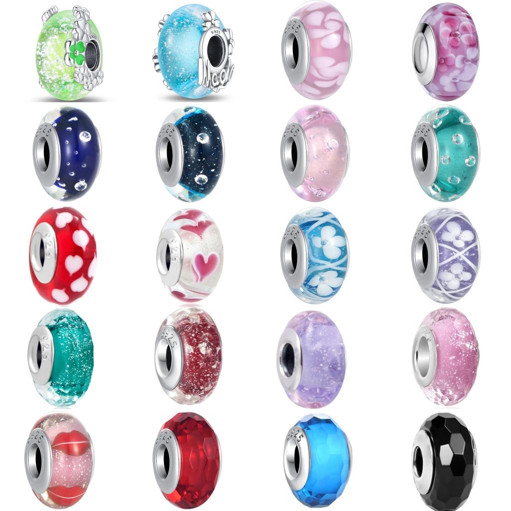 Classic Silve Colored Luminous Cosmic Rainbow Murano Glass Charms Beads Fit Diy Bracelet Women Jewelry Gift