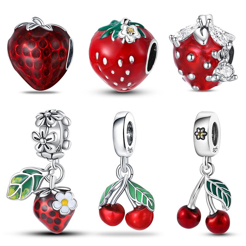 New In Copper Color Strawberry Cherry Fruit Series Charm Beads Fit 3Mm Original Bracelets Diy Birthday Jewelry Gift