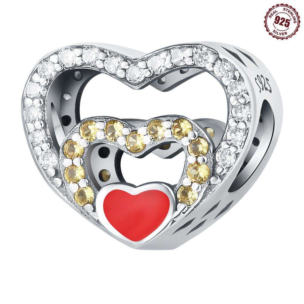 Beads Copper Charms Original Zircon Heart Hollow Beads Fit Bracelet Jewelry Diy Women Fine Gift Accessory