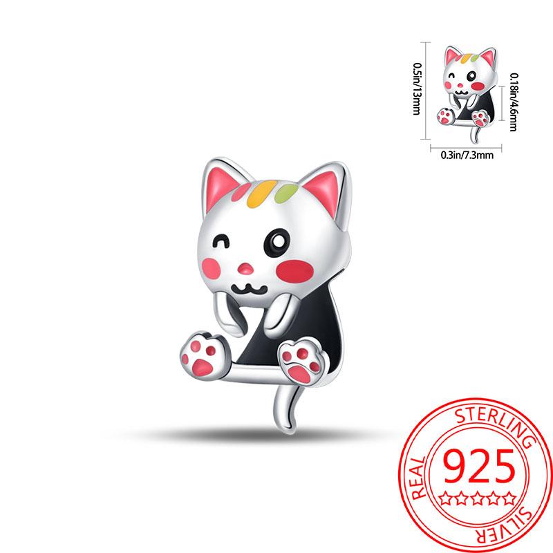 Original Copper Charms Luxury Cute Pet Cat Pink Color Beads Fit Bracelet Diy Women Making Delicate Gift