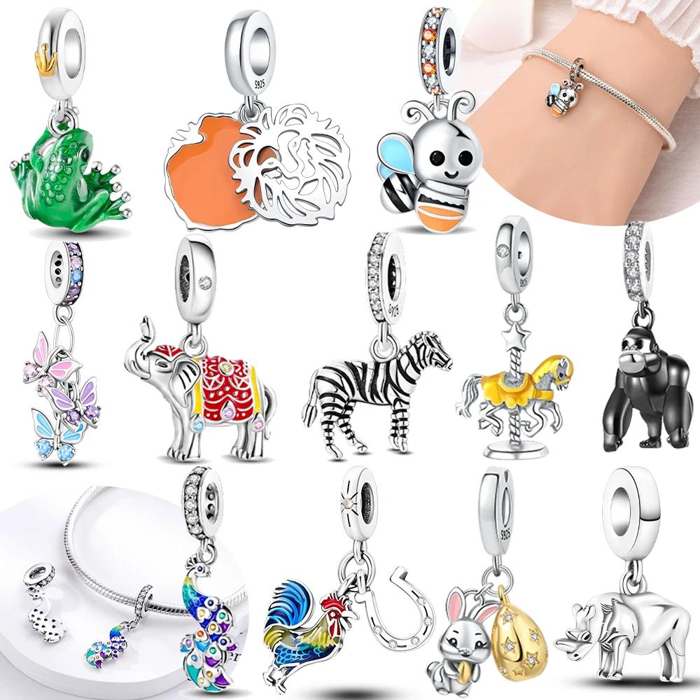 Charms Copper Original Elephant Colorful Peacock Bee Frog Beads Fit Bracelet Women Jewelry Diy Fine Gift Accessory