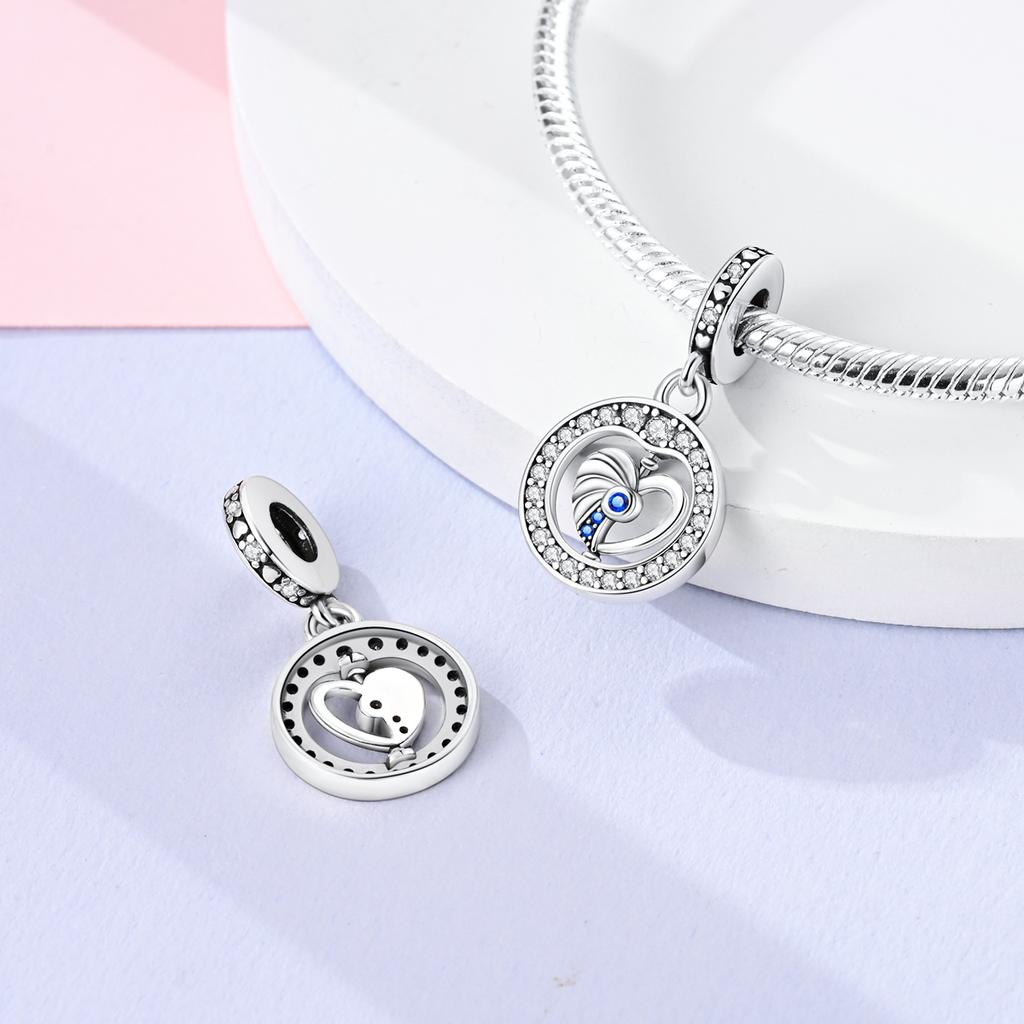 Blue Ocean Heart-Shaped Charms Copper Original Beads Fit Originalcharms Bracelet Beads Jewelry Gifts For Women