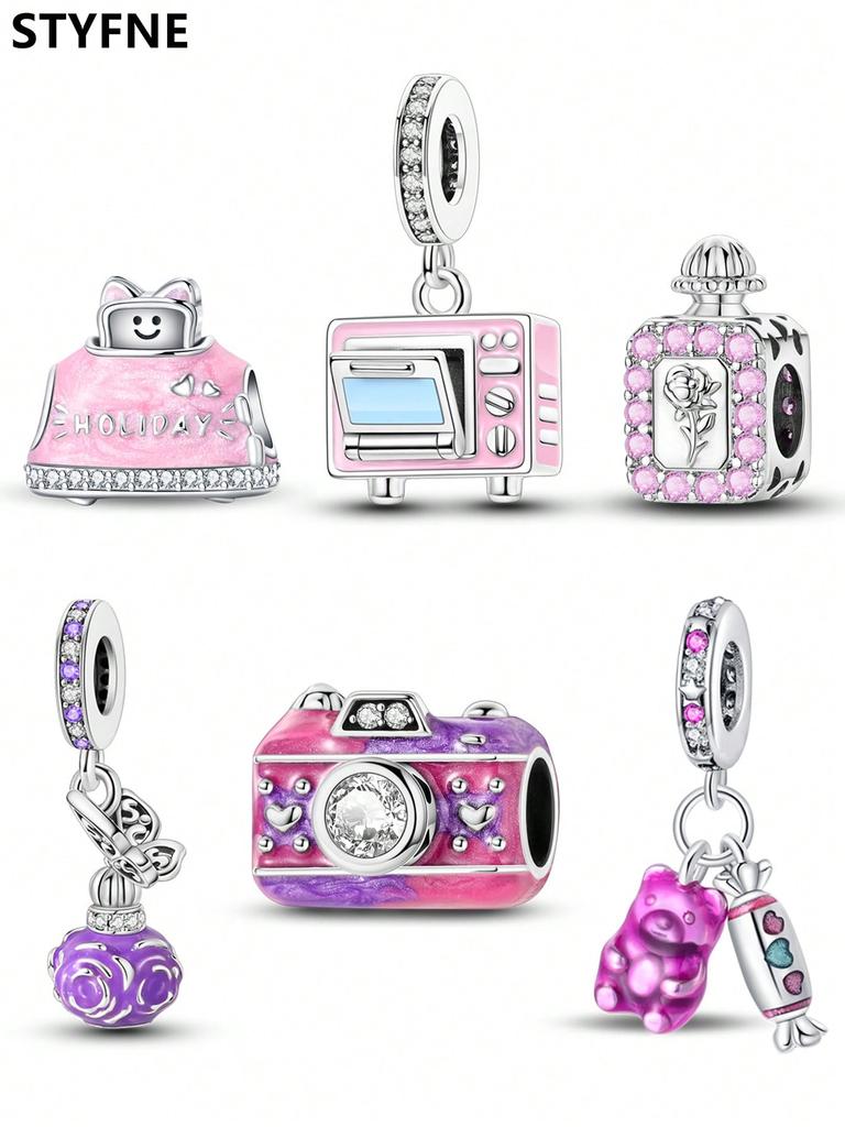 Charms Plata Pink Oven Rose Perfume Beads Charm Copper Plated Fit Charms Original Bracelet For Jewelry Making Diy Charm