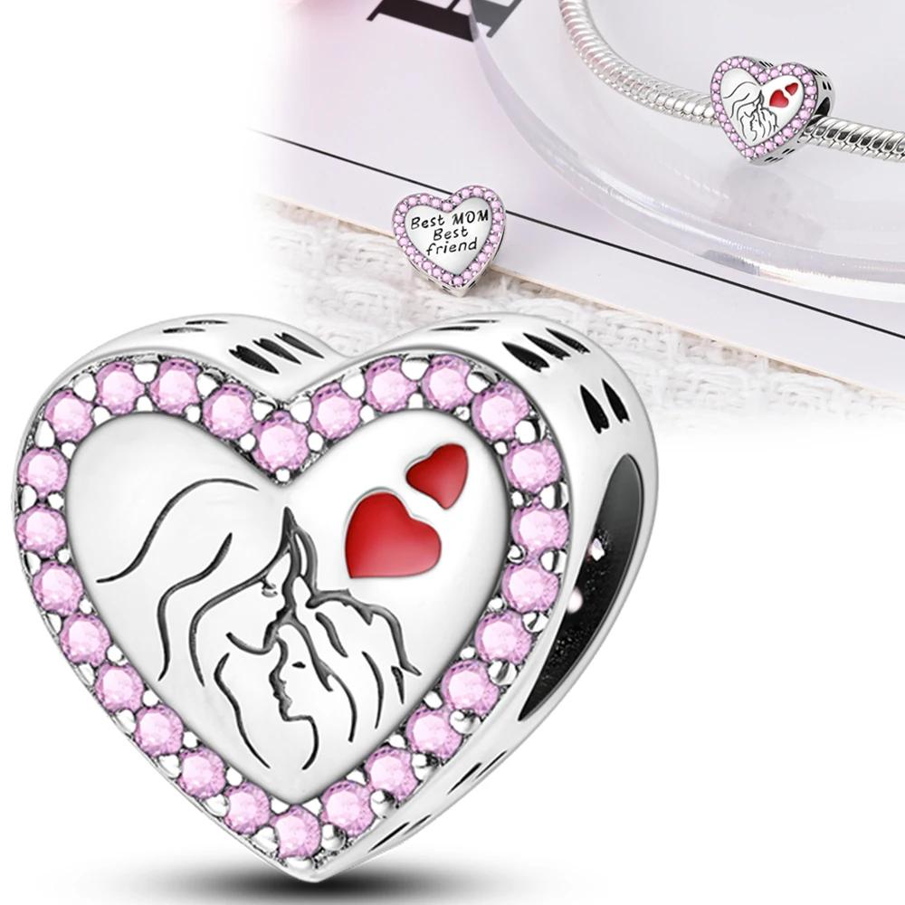 Mother'S Day Heart-Shaped Charms Copper Plated Original Beads Fit Originalbracelet Jewelry Gifts For Women