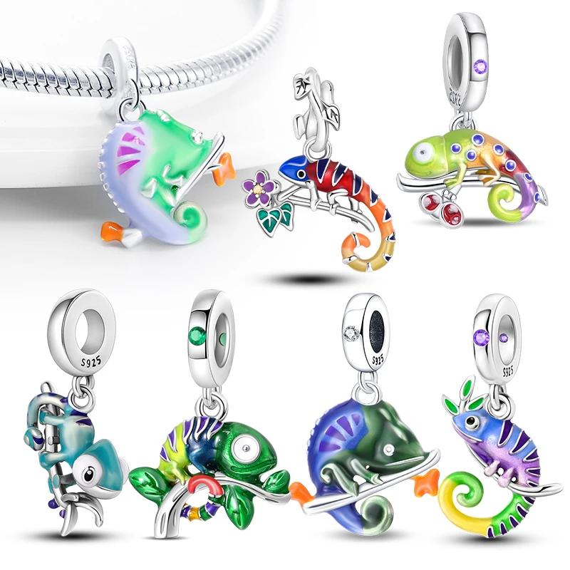 Copper Forest Chameleon Luminous Charm Pendant Beads Fit Pandora Original Bracelet For Women Fine Jewelry Making Gift
