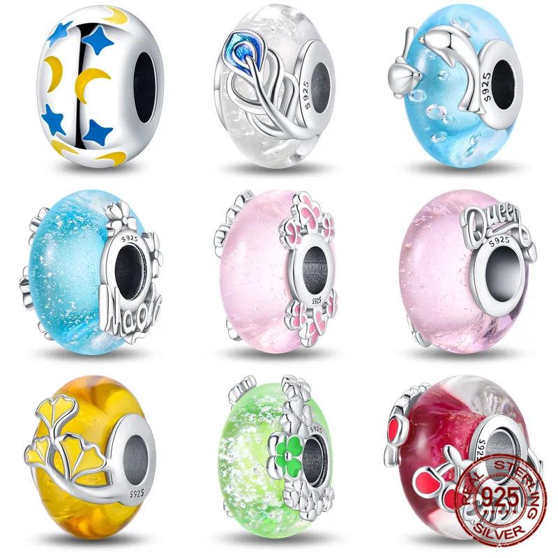 Glass Beads Copper Charm Fit Pan Original Bracelets Glow In The Dark Charms Glass Pendantdiy Jewelry