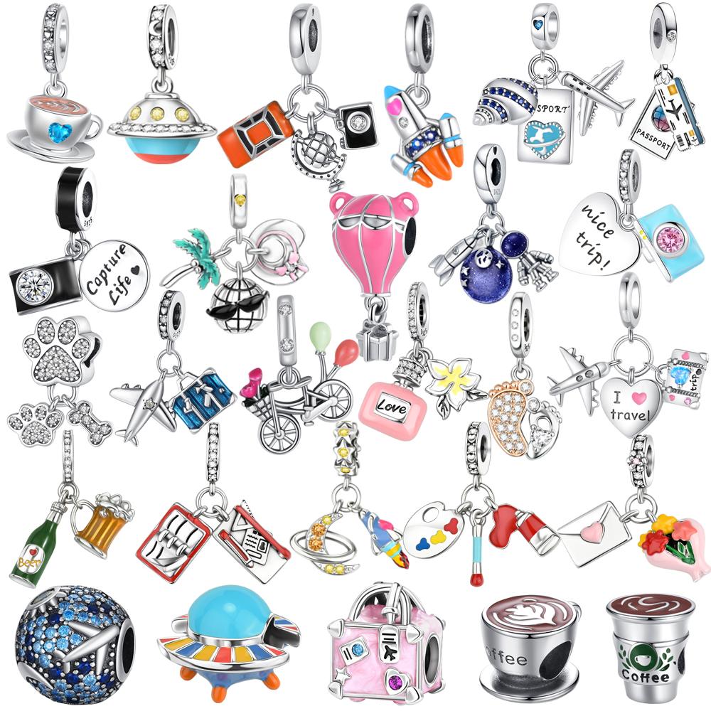 New Charms Copper Airplane Globe Suitcase Air Balloon Travel Beads Fit Original Bracelet Necklace Diy Jewelry