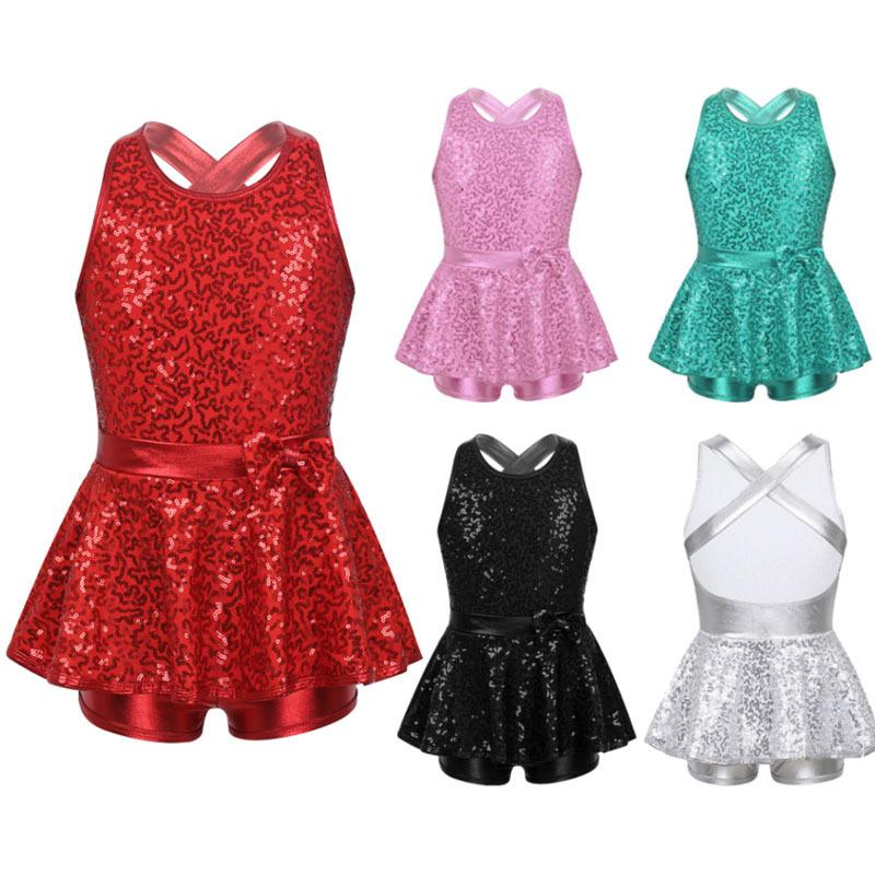 Sparkly Sequins Ballet Gymnastics Bodysuit Girls Sleeveless Dress Leotard Modern Jazz Performance Dance Costume