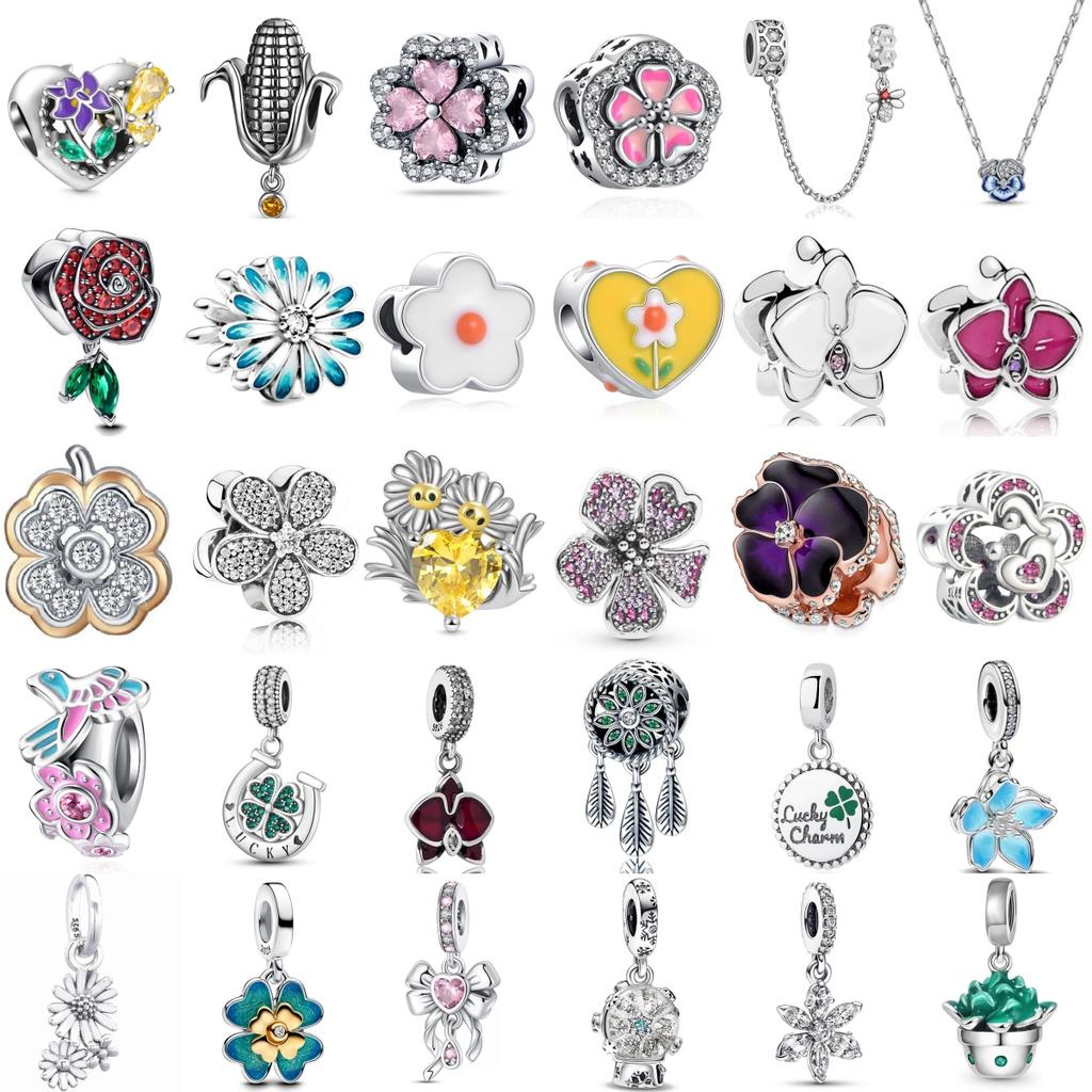 Copper Colorful Flowers Four-Leaf Clover Butterfly Charm Beads Suitable Fit Original Bracelet Exquisite Diy Jewelry