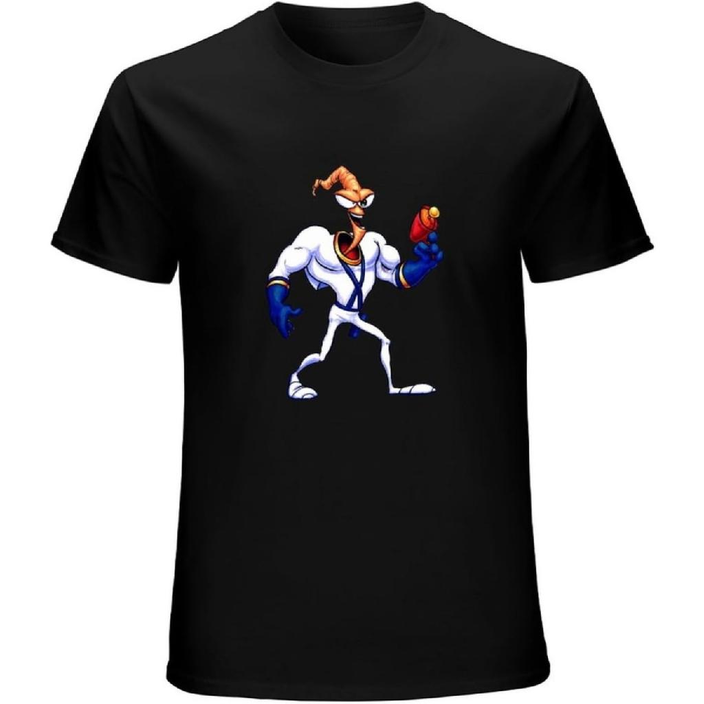 Earthworm Jim Vintage T Shirt Short Sleeve Funny Top Black