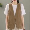 Summer Retro Cotton Vest Women's Loose Thin Versatile Sleeveless Coat Solid Color Casual Waistcoat Tops Cardigan Short Jackets