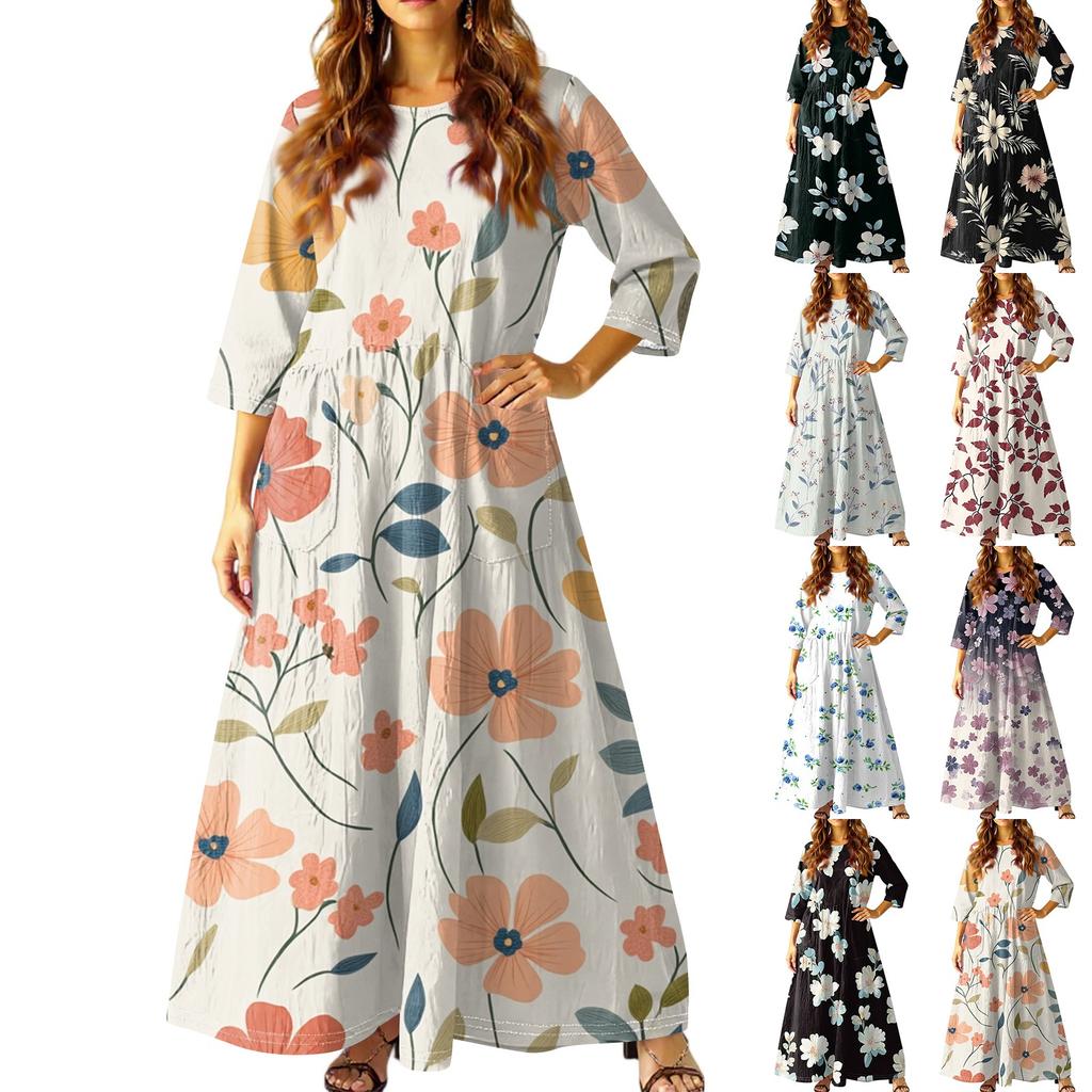 Women's Casual Fashion Vintage Floral Print Three-quarter Sleeve Long Dress With Pockets Women's Summer Casual Floral Print Short Sleeve O Neck High Waist A Line Tiered Flowy Boho Maxi Dress We can guarantee that the overall displayed in the photography is accurate, however there may be differences in how the appears during wear. This depends other physical variables, e.g. personal body size, body shape, limb proportion, height, etc. Description: MATERIAL: Our short-sleeve summer dresses feature a skin-friendly, soft, and elastic fabric that is breathable, does not shrink, and offers exceptional comfort, providing you with a delightful wearing experience. MATCHING: Pair with and a denim jacket for a relaxed day, or to a and heels for work. Add jewelry and heels for nights out, or sandals and a crossbody bag for weekends. OCCASION: This dress is versatile for various occasions like everyday wear, casual outings, work, evening events, weekend gatherings, beach trips, vacations, and travel adventures. Gender:Women Material:Polyester Dress Length:Knee-Length Decoration:None Silhouette:A-Line What you get:1 X Dress Note: Due to possible physical differences between different monitors, the product photography is illustrative and may not precisely reflect the actual color of the item received