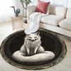 Black and White Fox,Round Area Rug,Carpet Rug for Living Room Bedroom Sofa Playroom Decor,Non-slip Floor Mat