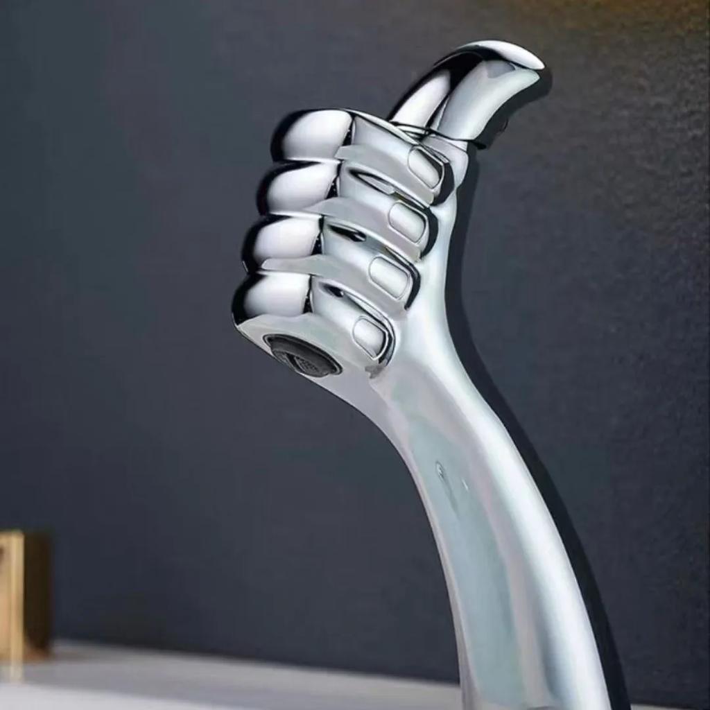 New Style Bathroom Basin Faucet Hot and Cold Water Thumb Faucet, Washbasin Mixers Taps, Universal Basin Faucet Black Chrome Gray