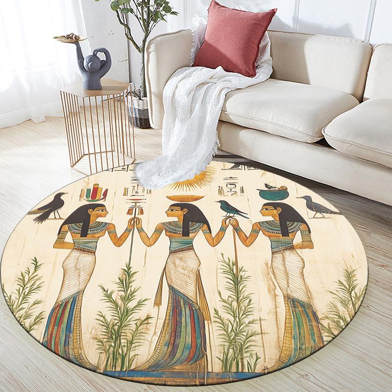 Ancient Egyptian Gods,Round Area Rug,Carpet Rug for Living Room Bedroom Sofa Playroom Decor,Non-slip Floor Mat