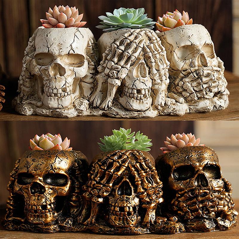 Skull Shaped Flower Pot Halloween Skull Pen Pencil Holder Skeleton Key Holder Makeup Brush Holder Home Office Desk Supplies