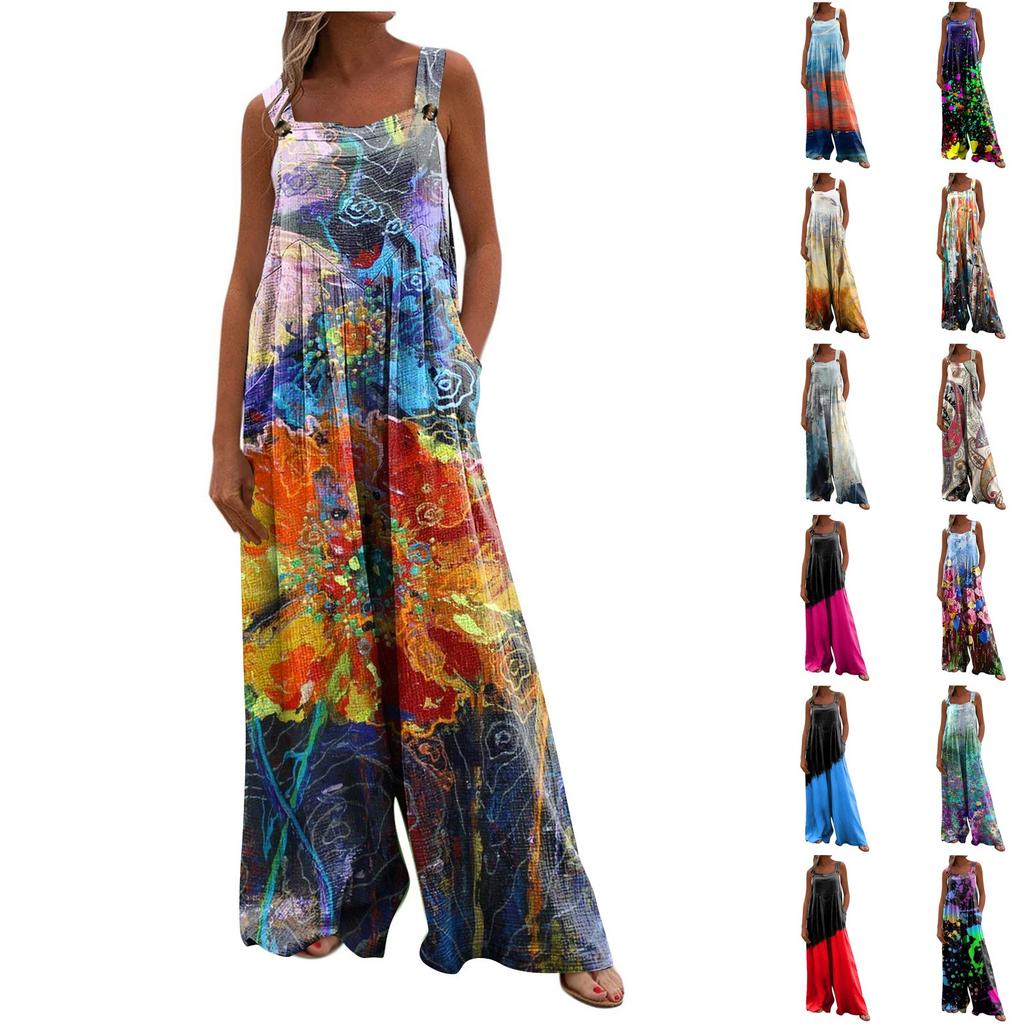 Women's One-Piece Button Up Jumpsuit Casual Loose Sleeveless Rompers With Pockets