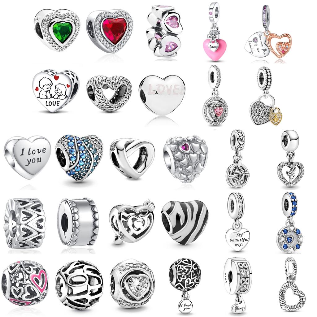 New Red And Green Hearts Charm Fit Original Bracelet Shining Bead Diy Women Jewelry Giftcopper Trinket Jewelry Party Gift