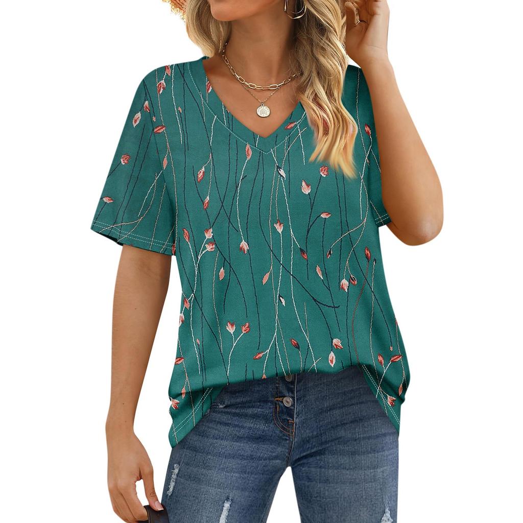 Short Sleeve Womens Tops Floral Print Vintage Fashion Casual Loose With V Neck Plus Size Shirts Describe Material: Made of high quality fabric consisting ofPolyester+Spandex. The fabric is super soft and comfortable, very suitable for daily casual wear. The Tshirts is breathable and elastic, keeping you cool and comfortable in spring and summer. Features: casual top is soft, breathable and very comfortable to wear. The fabric has a lightweight texture for a relaxed and casual look, perfect for a basic tees. Design: Casual T-Shirt is made with loose fit and Imitation cotton fabric, which makes the garment look casual and comfortable, perfect for daily wear. Occasion casual basic tees very suitable for daily dressed, casual, dating, work, beach, vacation, streetwear, running, workout, exercise or any occasions. :tops features a relaxed fit , making it easy to pair with jeans, shorts, leggings, joggers, sweatpants or skirts. It's perfect for spring, summer and fall. Product information Gender: Female Occasion: Casual Material: Polyester : casual Length: Regular Thickness: Standard Washing method: Hand wash in cold water, hang or dry What you will get: 1 X women's top