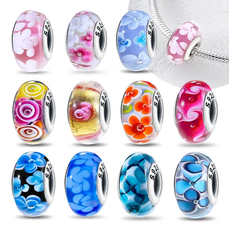 Original Copper Flower Charms Glass Bead Colored Murano Fit Bracelet Diy For Women Fine Jewelry Gifts Making