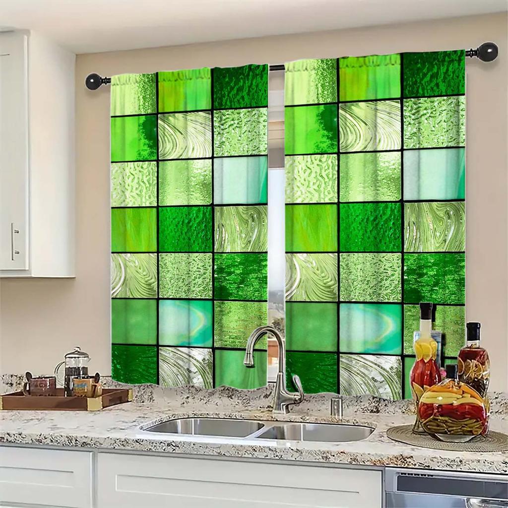 2-Panels Colored Square Glass Window Curtains Distinctive Printed Curtains Suitable for Gifting To Family and Friends
