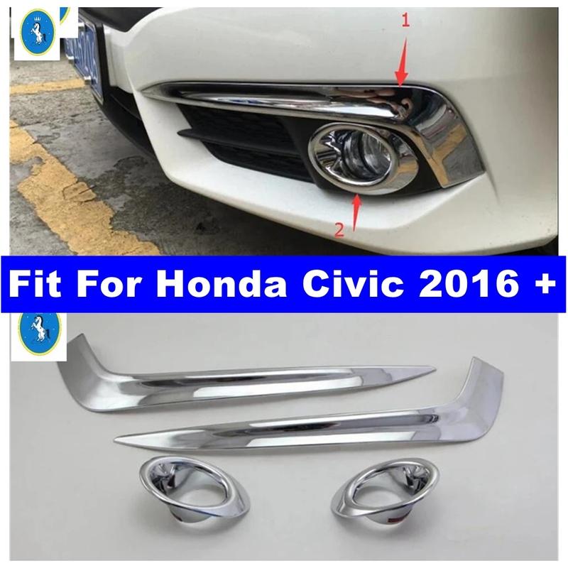 Chrome Car Front Fog Lamp Lights Eyebrow Eyelid Decor Ring Cover Trim For Honda Civic 2016 - 2018 Exterior Refit Kit Accessories