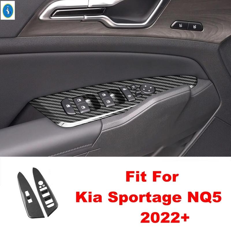 LHD Carbon Fiber Door Handle Holder Window Lift Button Switch Car Interior Accessories For Kia Sportage NQ5 2024 2025