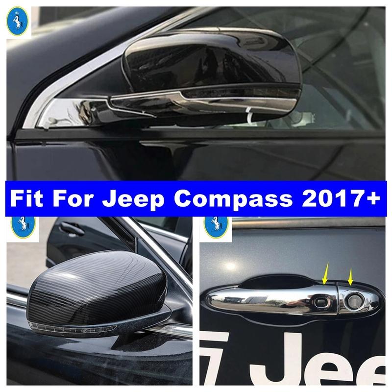 Auto Door Handle Bowl / Rearview Mirror Rubbing Protection Strip Cap Decor Cover Trim Accessories For Jeep Compass 2017 - 2024
