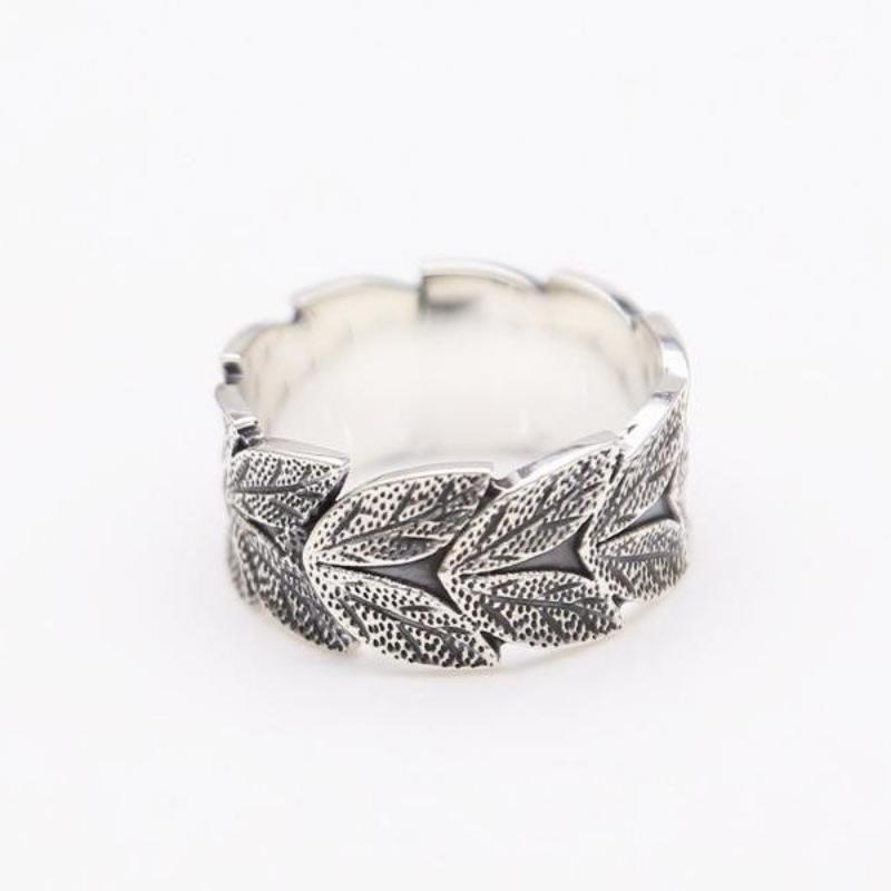 Trendy Brand Leaf Pattern Ring for Men, Retro Fashionable Index Finger Ring with Adjustable Opening