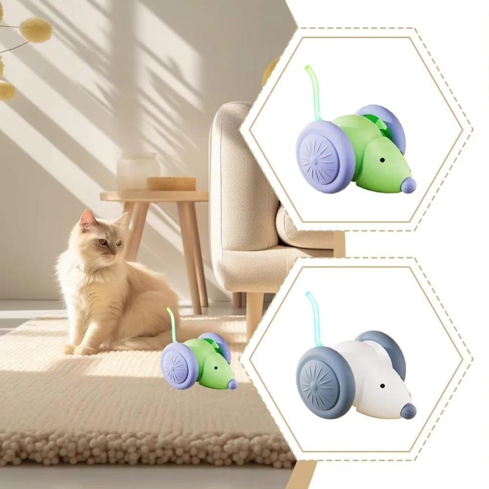 Creative Rechargeable Electric Mouse Car with LED Tail Obstacle Avoidance Interactive Cat Toy Automatic Kitten Toy