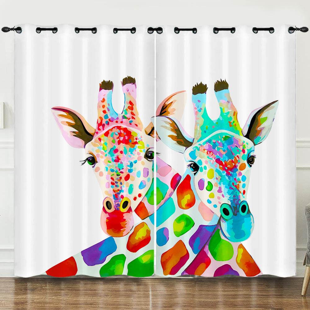 Curtain Cartoon Animal Love Giraffe 3D Digital Printing Blackout Curtain Punching