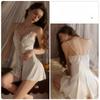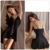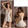 Women’s Sleep Dress Satin Low-Cut Nightdress with T-Back Thong Pure Sweet Style Lace Lingerie
