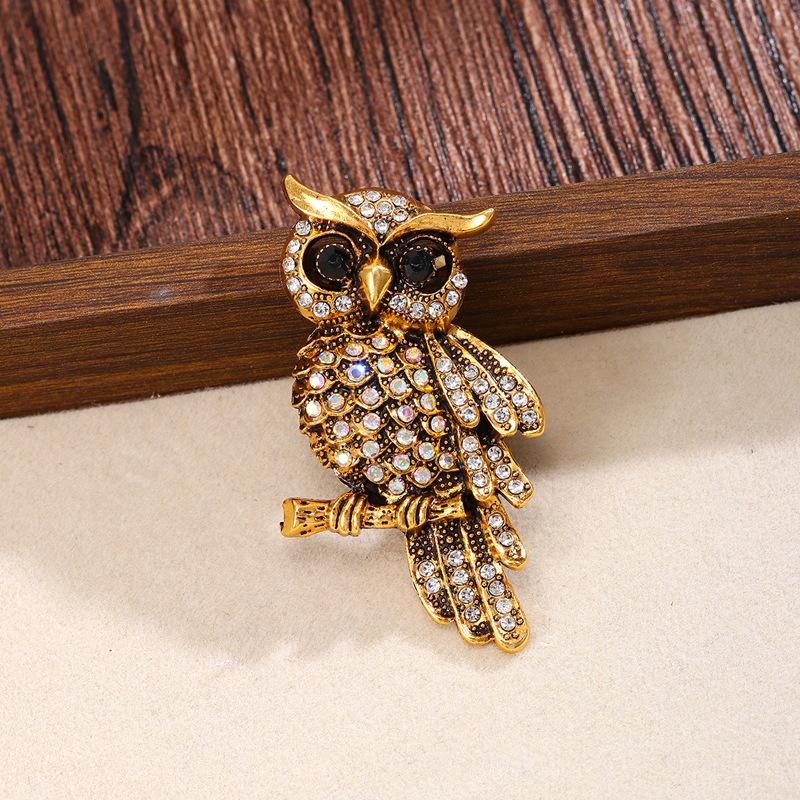 High-end Luxury Full Blue Owl Women's Accessories Retro Owl Brooch