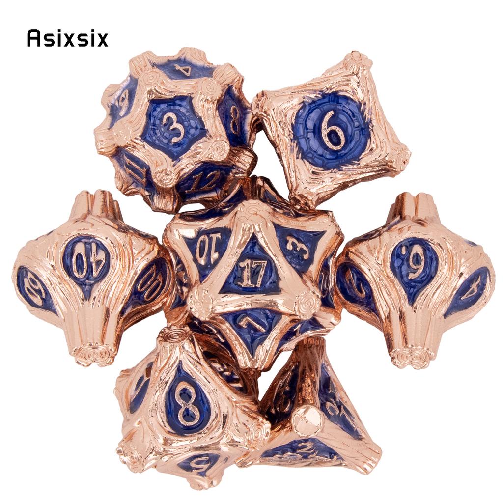 7 Pcs Copper Blue Tree Stump Root Metal Dice Solid Metal Polyhedral Dice Set Suitable for Role-Playing RPG Board Game Card Game